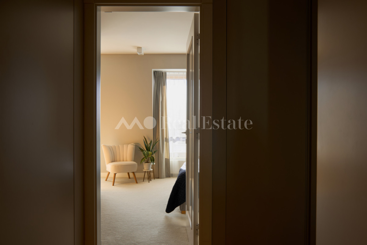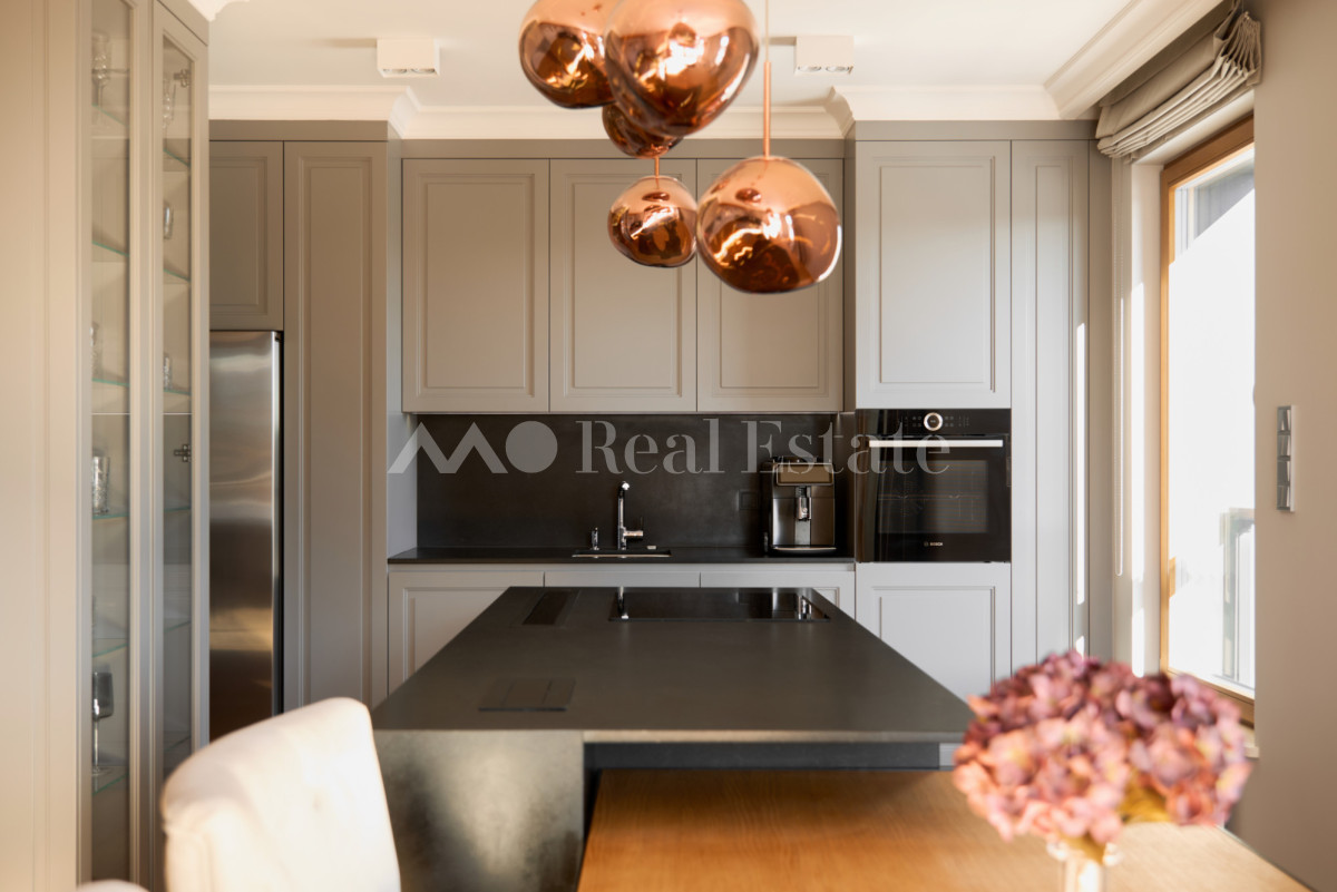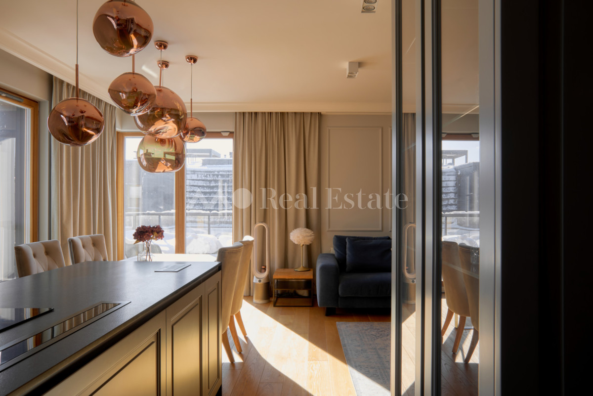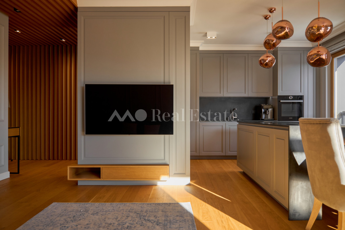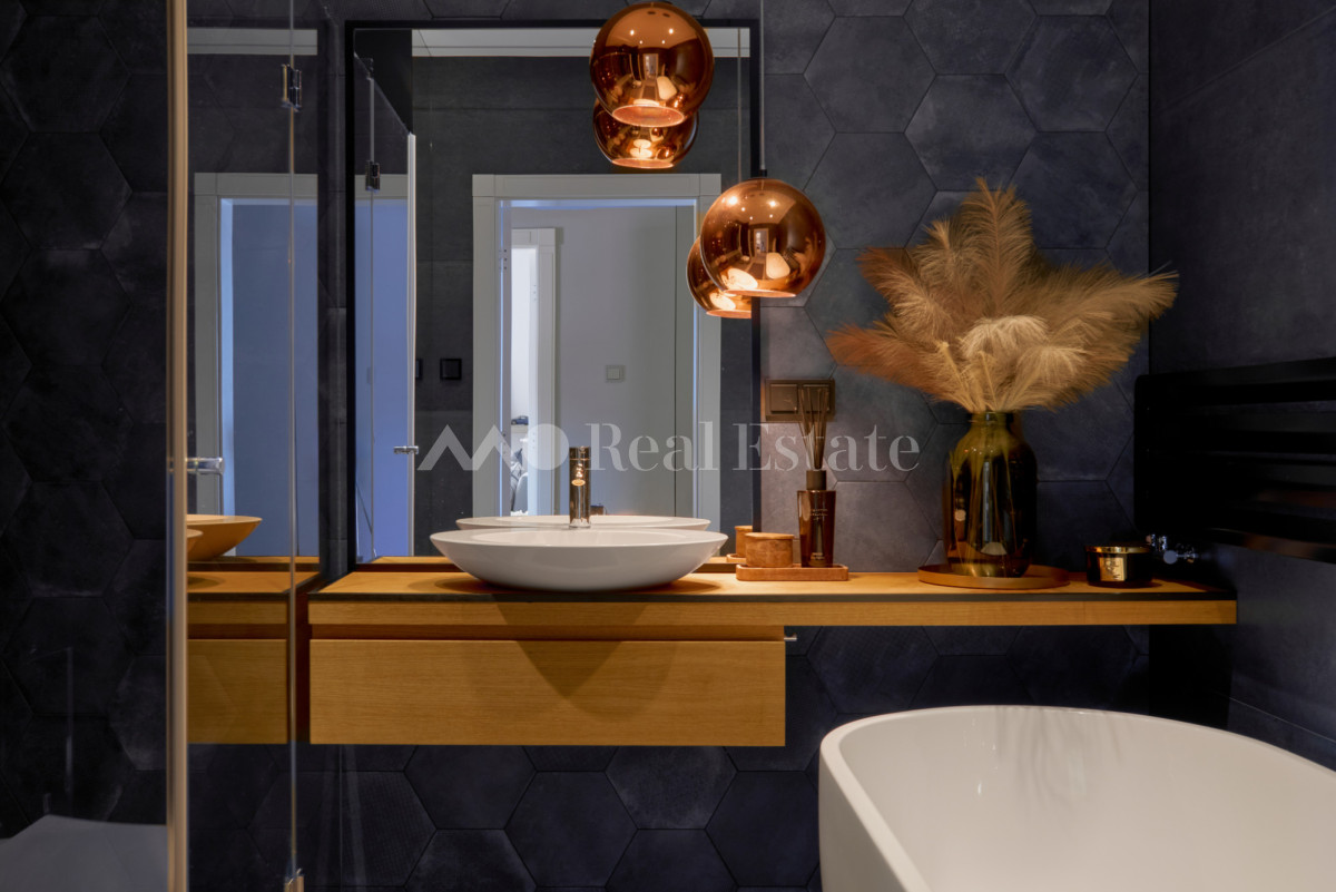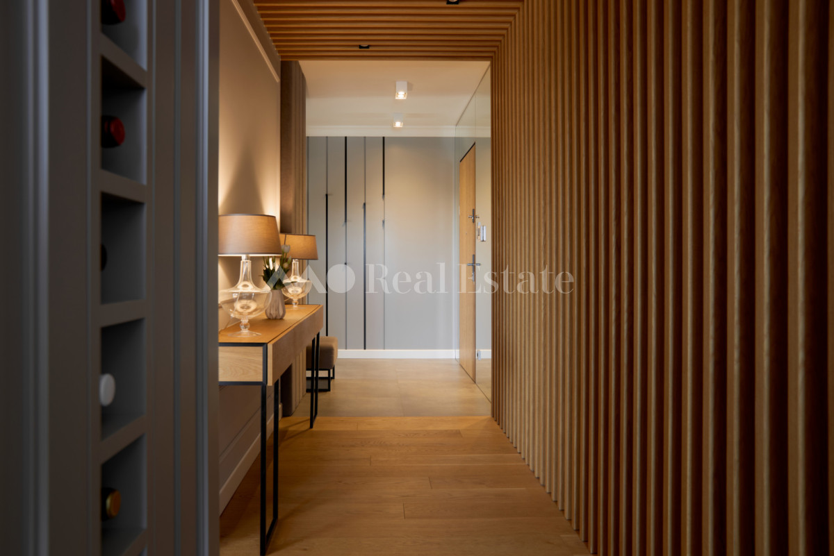 Przestronny apartament zlokalizowany jest na ostatnim 3. piętrze z trzema tarasami w tym jednym na dachu. Nieruchomość ma powierzchnię 108,5 m2 i składa się z przestronnego salonu z aneksem kuchennym, sypialni połączonej z garderobą i łazienką, dwóch pokoi, drugiej łazienki i holu. Apartament został wykończony w wysokim standardzie, przy użyciu najwyższej jakości materiałów, w nowoczesnym stylu. Mieszkanie w pełni wyposażone w sprzęty RTV/AGD oraz klimatyzację.