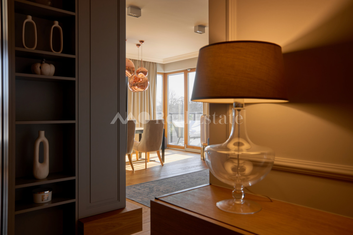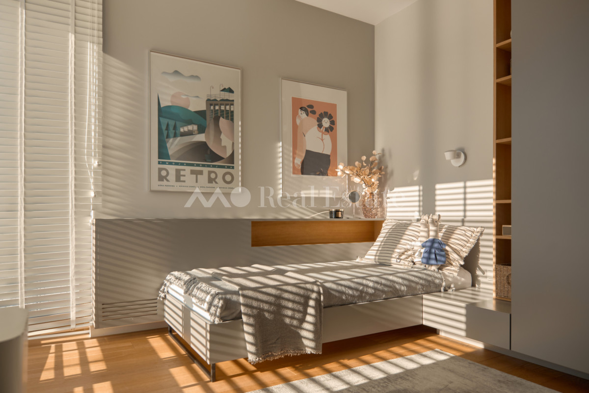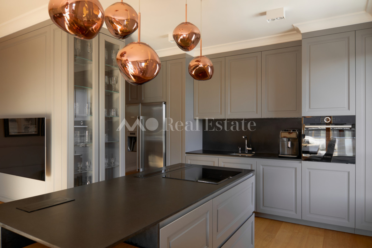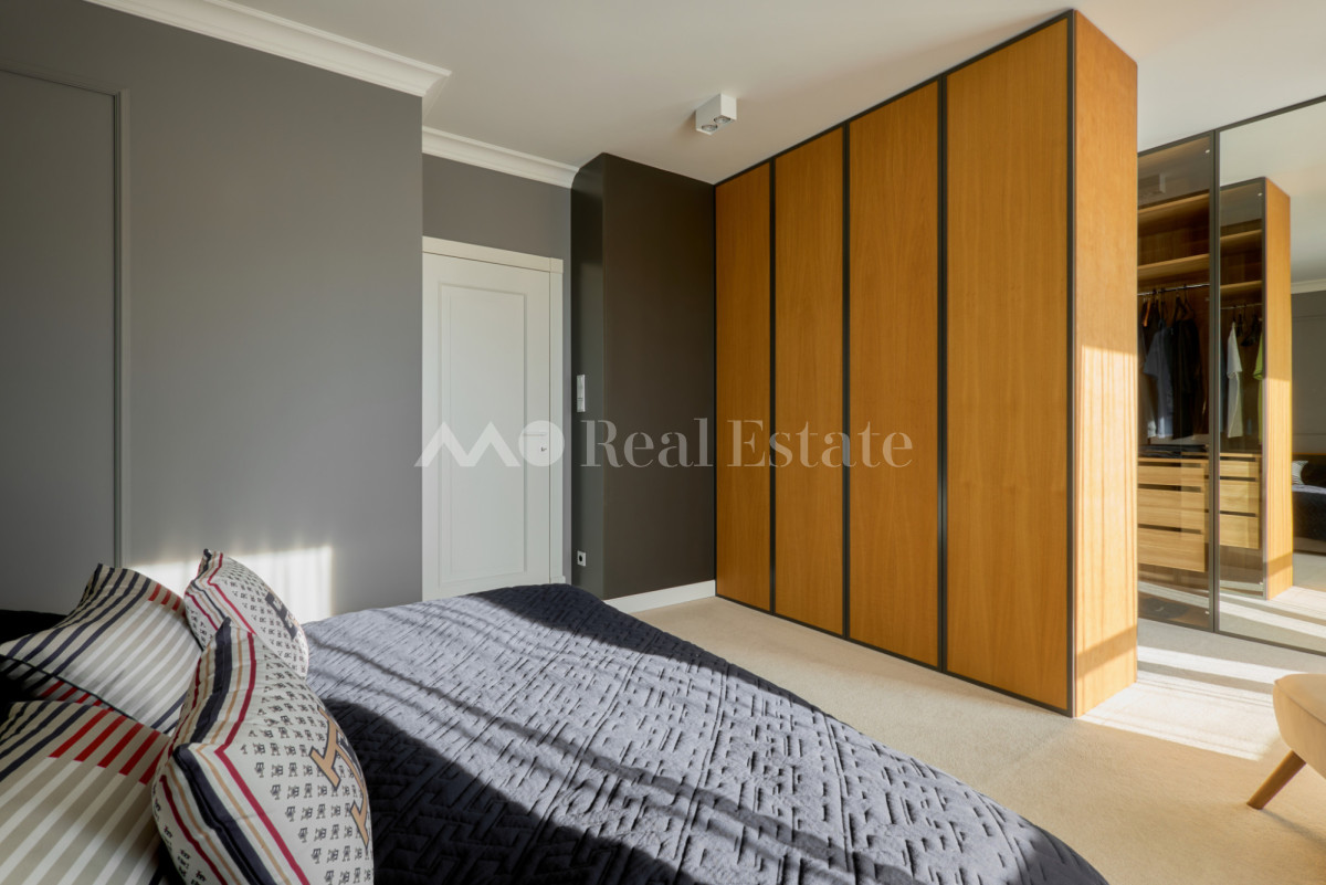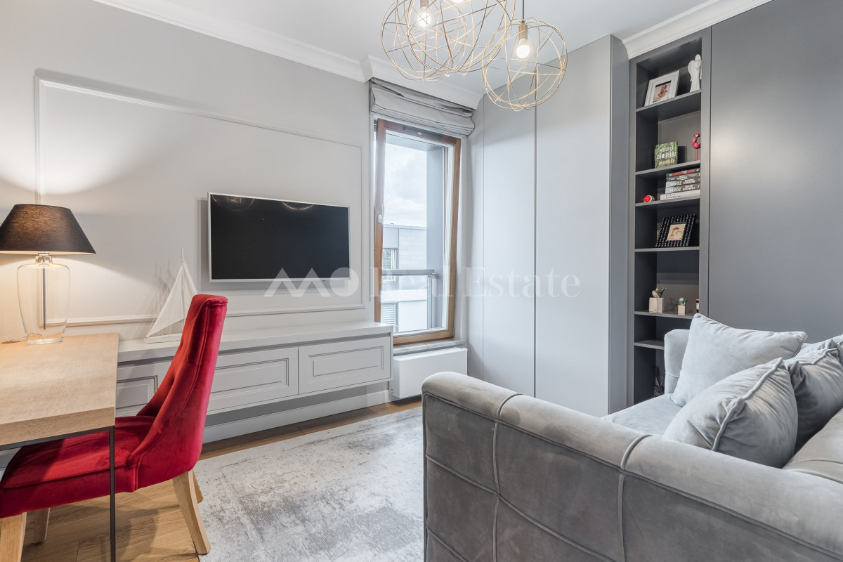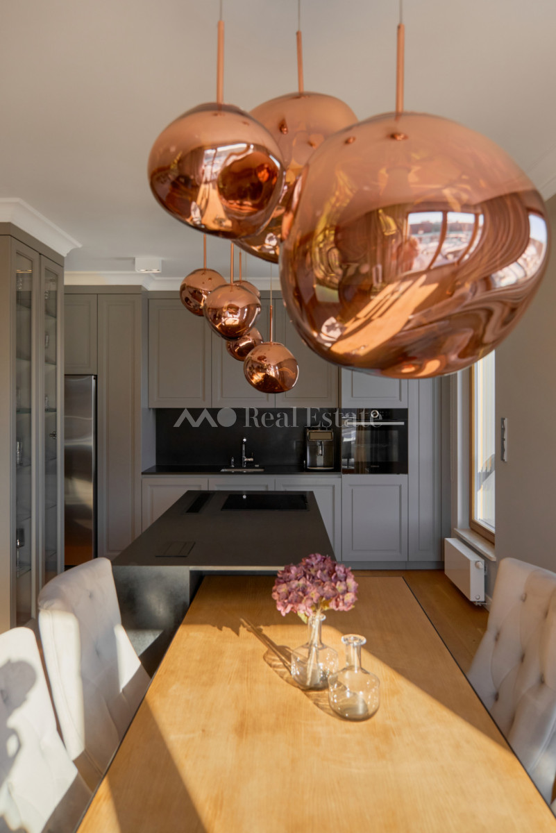 Przestronny apartament zlokalizowany jest na ostatnim 3. piętrze z trzema tarasami w tym jednym na dachu. Nieruchomość ma powierzchnię 108,5 m2 i składa się z przestronnego salonu z aneksem kuchennym, sypialni połączonej z garderobą i łazienką, dwóch pokoi, drugiej łazienki i holu. Apartament został wykończony w wysokim standardzie, przy użyciu najwyższej jakości materiałów, w nowoczesnym stylu. Mieszkanie w pełni wyposażone w sprzęty RTV/AGD oraz klimatyzację.