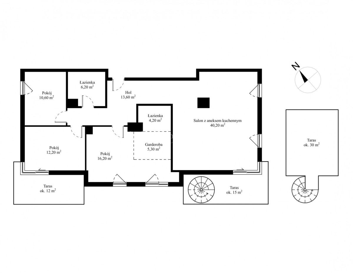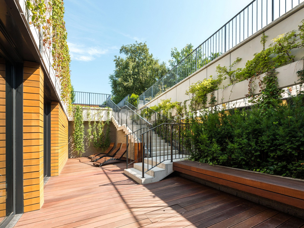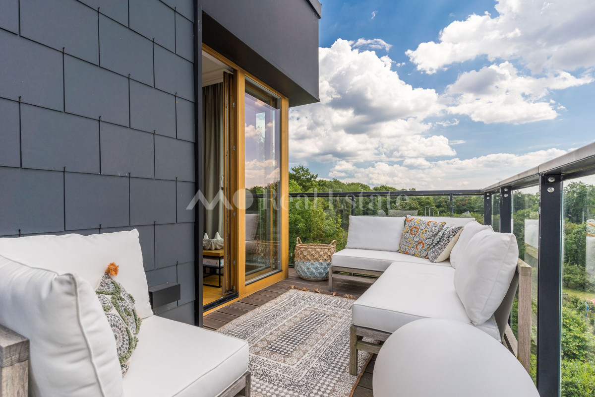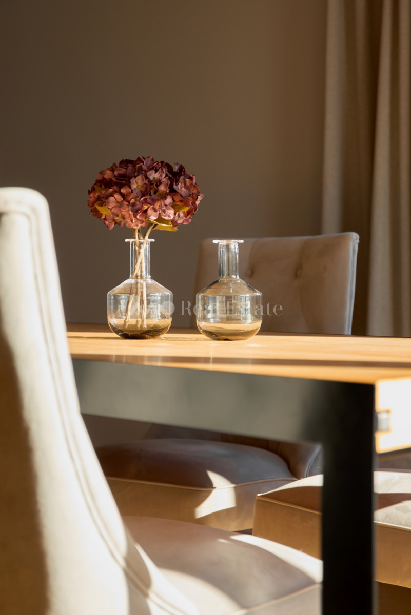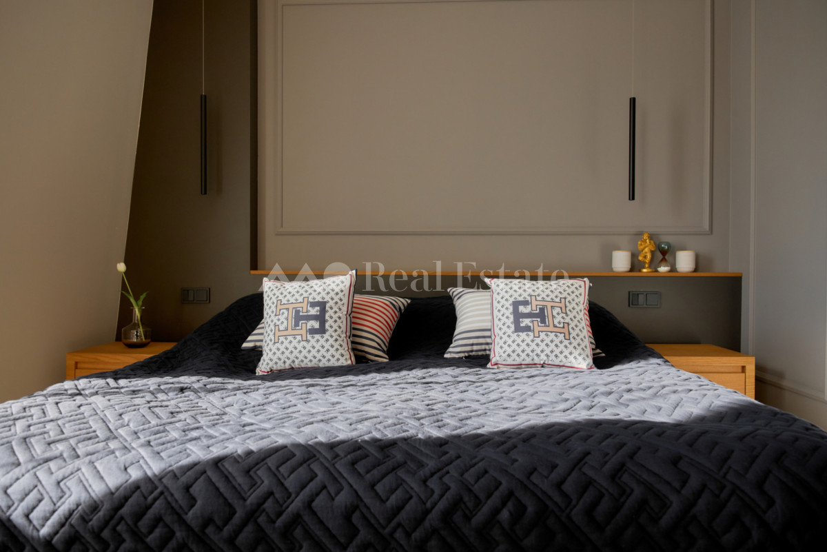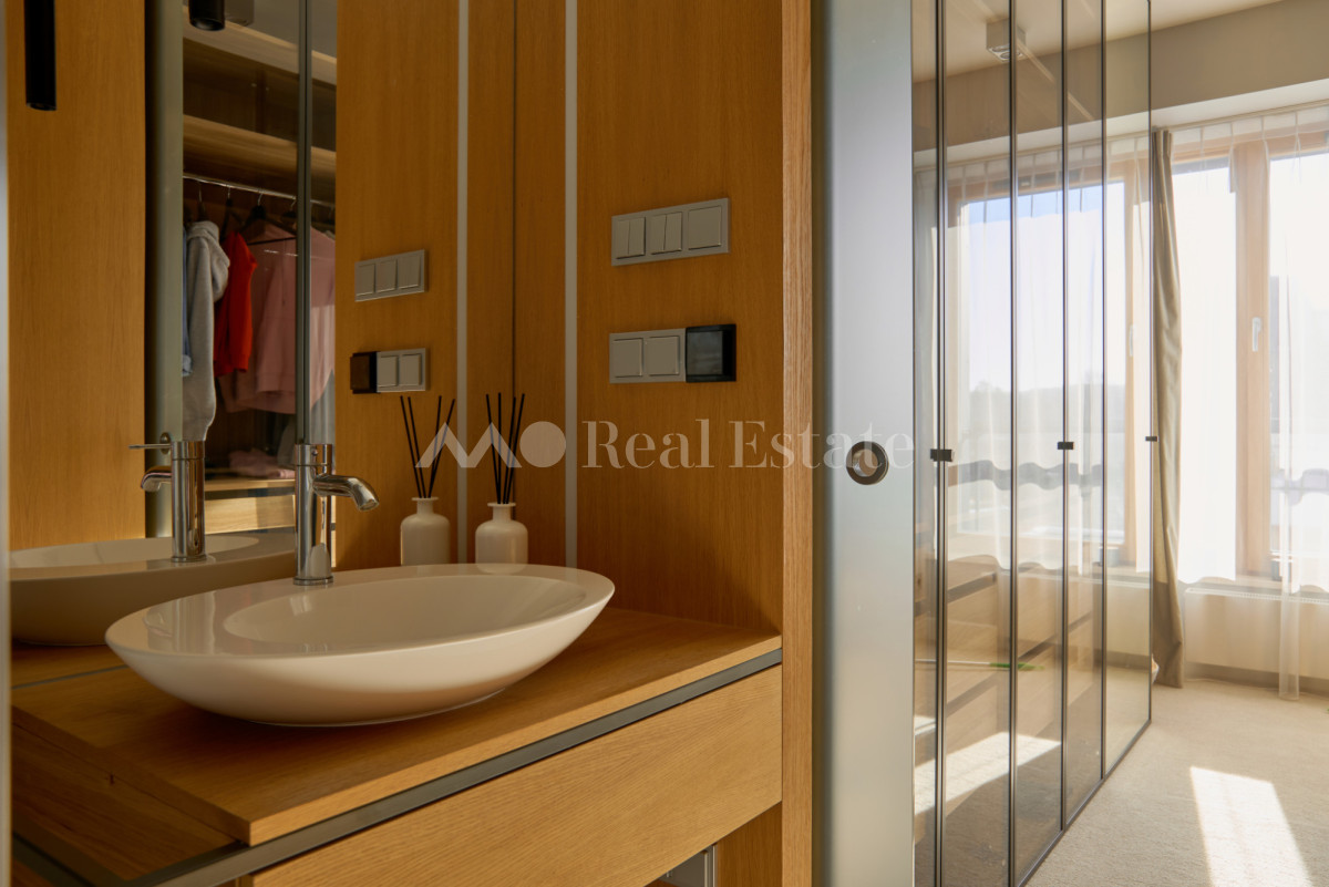 Przestronny apartament zlokalizowany jest na ostatnim 3. piętrze z trzema tarasami w tym jednym na dachu. Nieruchomość ma powierzchnię 108,5 m2 i składa się z przestronnego salonu z aneksem kuchennym, sypialni połączonej z garderobą i łazienką, dwóch pokoi, drugiej łazienki i holu. Apartament został wykończony w wysokim standardzie, przy użyciu najwyższej jakości materiałów, w nowoczesnym stylu. Mieszkanie w pełni wyposażone w sprzęty RTV/AGD oraz klimatyzację.