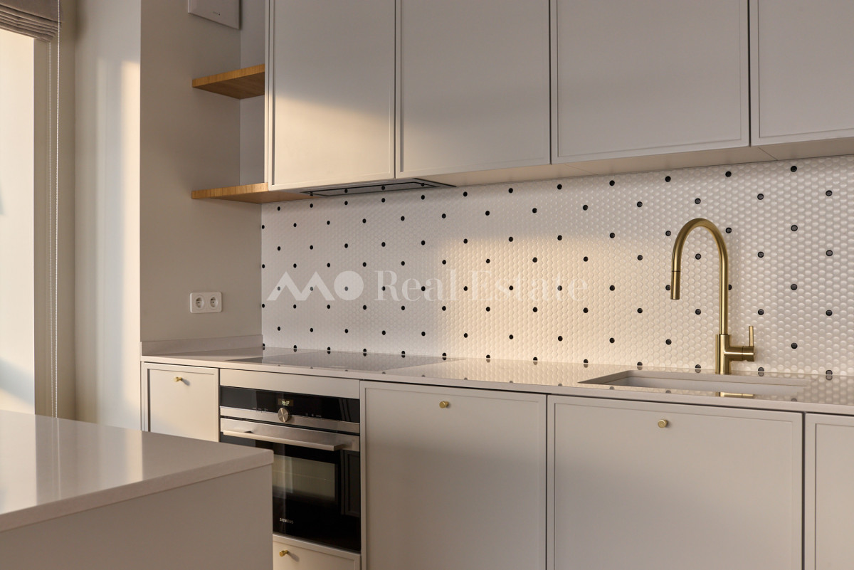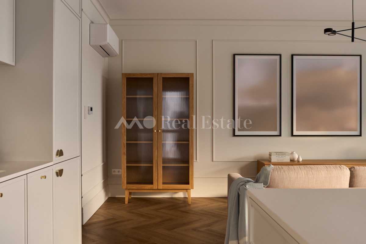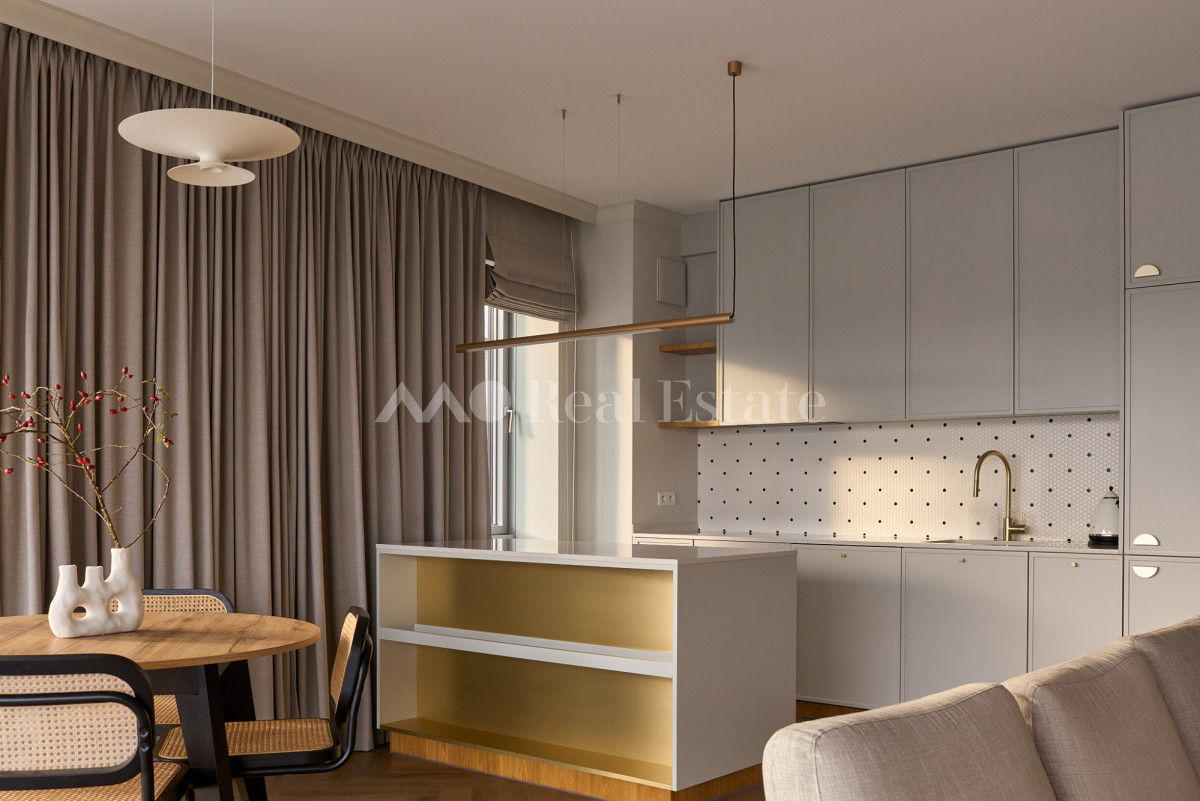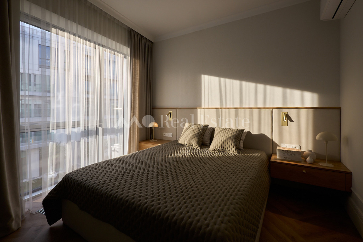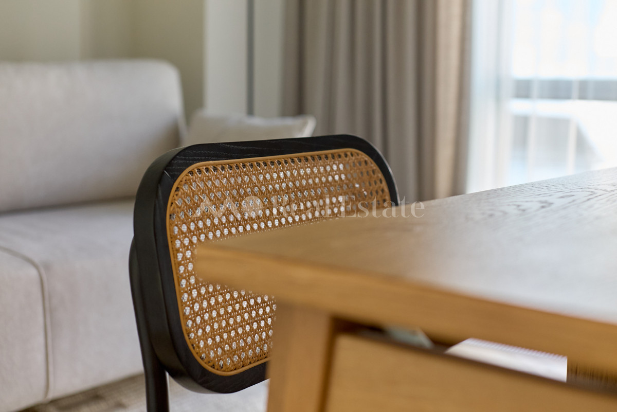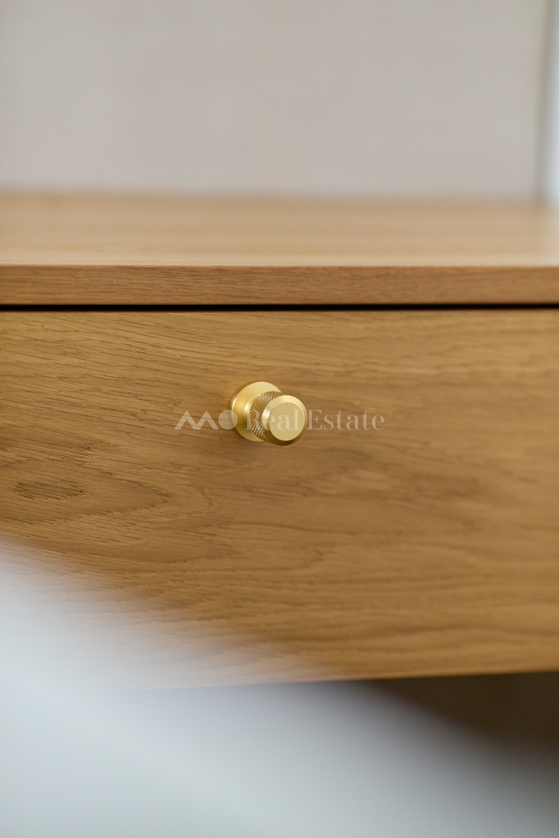 Apartament na sprzedaż o powierzchni 86m2 zostało wykończone materiałami wysokiej jakości i składa się z dwóch sypialni, łazienki z prysznicem, osobnej toalety, garderoby i salonu z frontowym widokiem na marine.